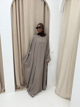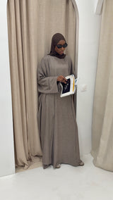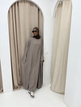 Cet ensemble kimono offre une coupe fluide et confortable, idéale pour tous les jours. Son style épuré et sa couleur sobre apportent une touche élégante et facile à porter, que ce soit pour une tenue décontractée ou plus habillée.
